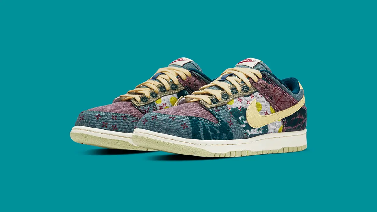 L’équipementier étend son programme Space Hippie. C’est en tant que basket écologique et respectueuse de l’environnement que se présente la Dunk Low SP Lemon Wash de Nike. Conçue à partir de matériaux recyclés, cette dernière se pare de finitions qui ne laissent pas indifférentes. En effet, la paire est dotée d’une empeigne colorée au fini patchwork. Saisissante par sa conception de haute qualité, elle adopte un look vintage qui se caractérise par l’effet délavé que l’on retrouve sur l’ensemble du upper.